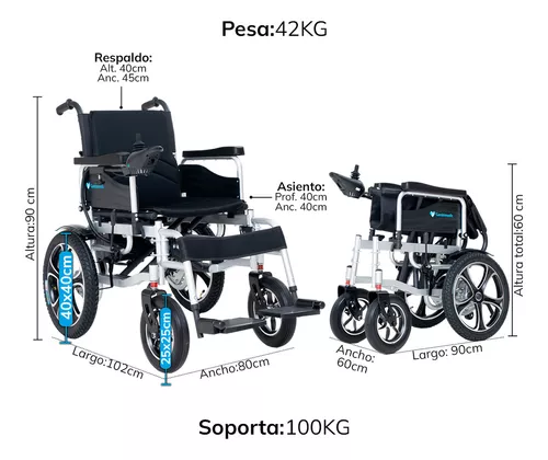 - Dimensiones de la silla centimetros 80 ancho x 90 alto x 102 largo, dimensiones silla doblada 60x60x90